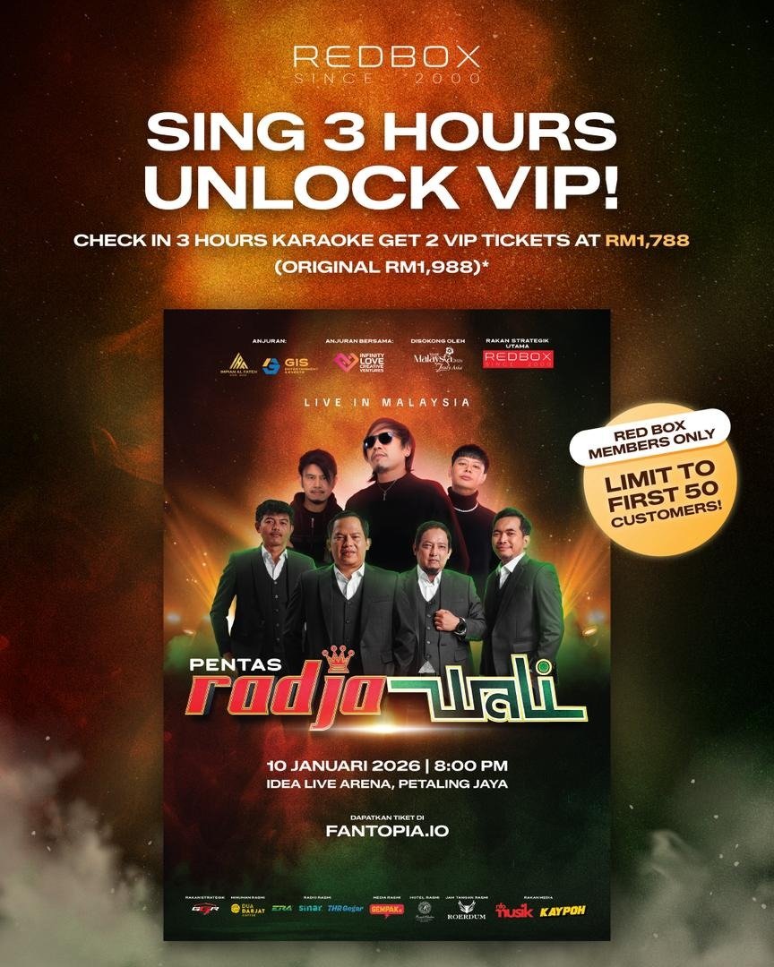 SING 3 HOURS, UNLOCK VIP! Check in 3 Hours Karaoke to 🎟️ get 2 VIP Tickets at RM1,788! (Original Price: RM1,988)