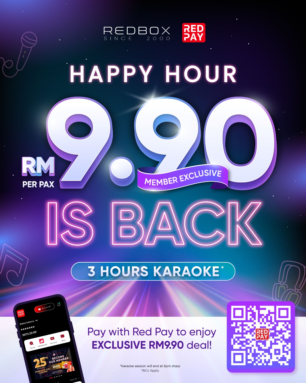 𝗢𝗡𝗟𝗬 RM9.90 per pax for 𝟯 𝗵𝗼𝘂𝗿𝘀 𝗼𝗳 𝗸𝗮𝗿𝗮𝗼𝗸𝗲!🎤🥰 💳 Pay with 𝗥𝗲𝗱 𝗣𝗮𝘆 to enjoy this exclusive RM9.90 promo! Special for Red Box Members, get ready to sing your heart out! 🎶