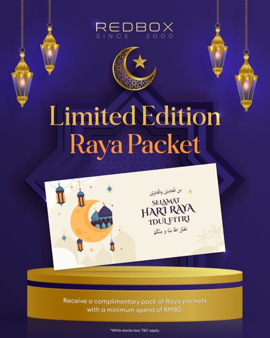 Spend RM80 in a single receipt and receive a 𝗙𝗥𝗘𝗘 𝗥𝗲𝗱 𝗕𝗼𝘅 2026 𝗟𝗶𝗺𝗶𝘁𝗲𝗱 𝗘𝗱𝗶𝘁𝗶𝗼𝗻 Raya 𝗣𝗮𝗰𝗸𝗲𝘁!