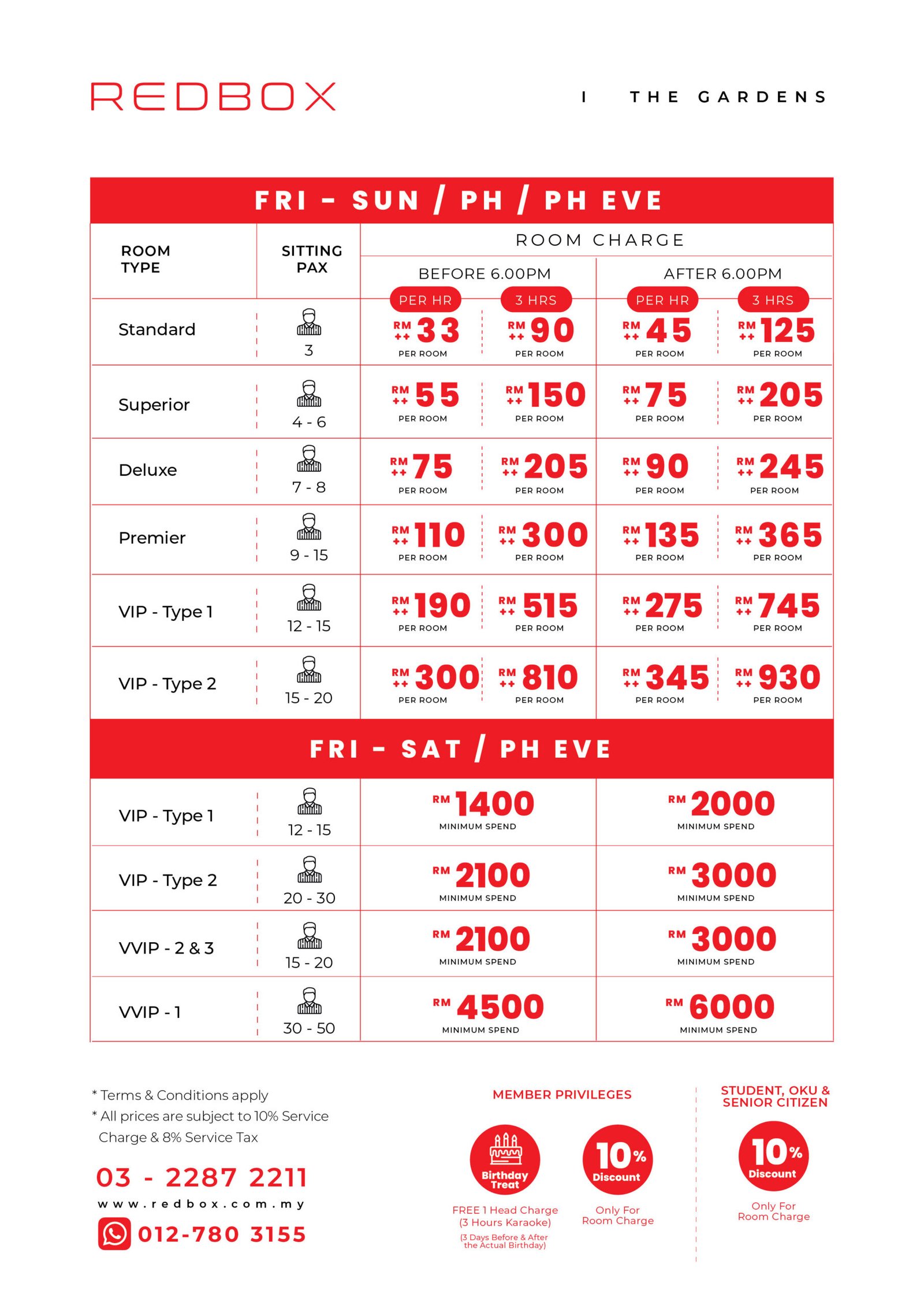 4. Customers who check-in After 6 PM into VIP and VVIP Rooms and reached the required Minimum Spending can enjoy Free Karaoke until closing time.