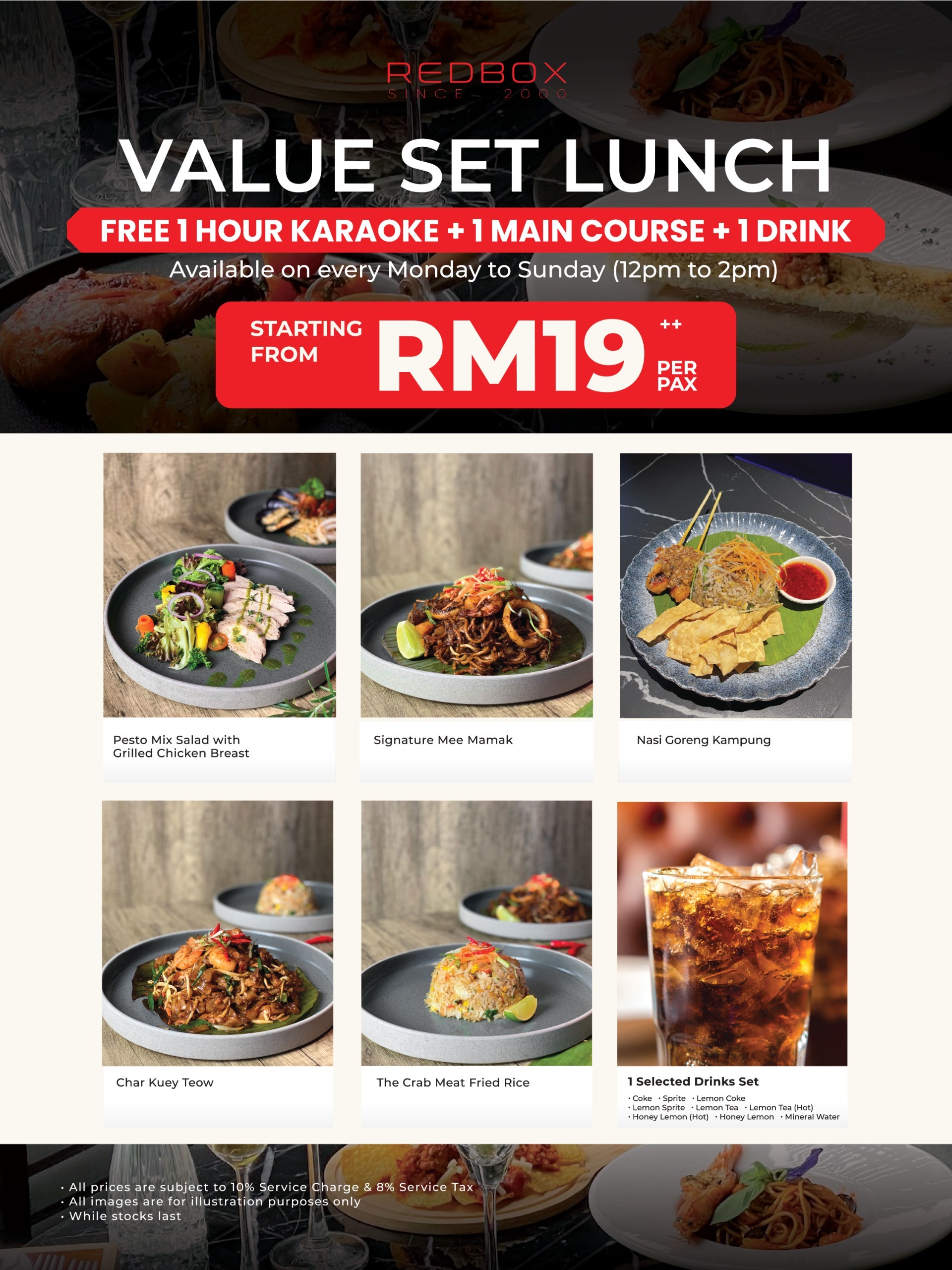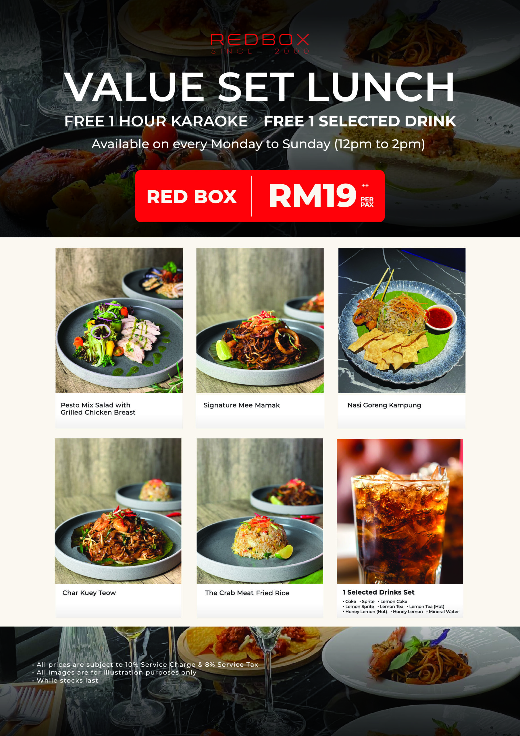 Menu and Price of set lunch differs for selected Red Box Plus and Red Box outlets.